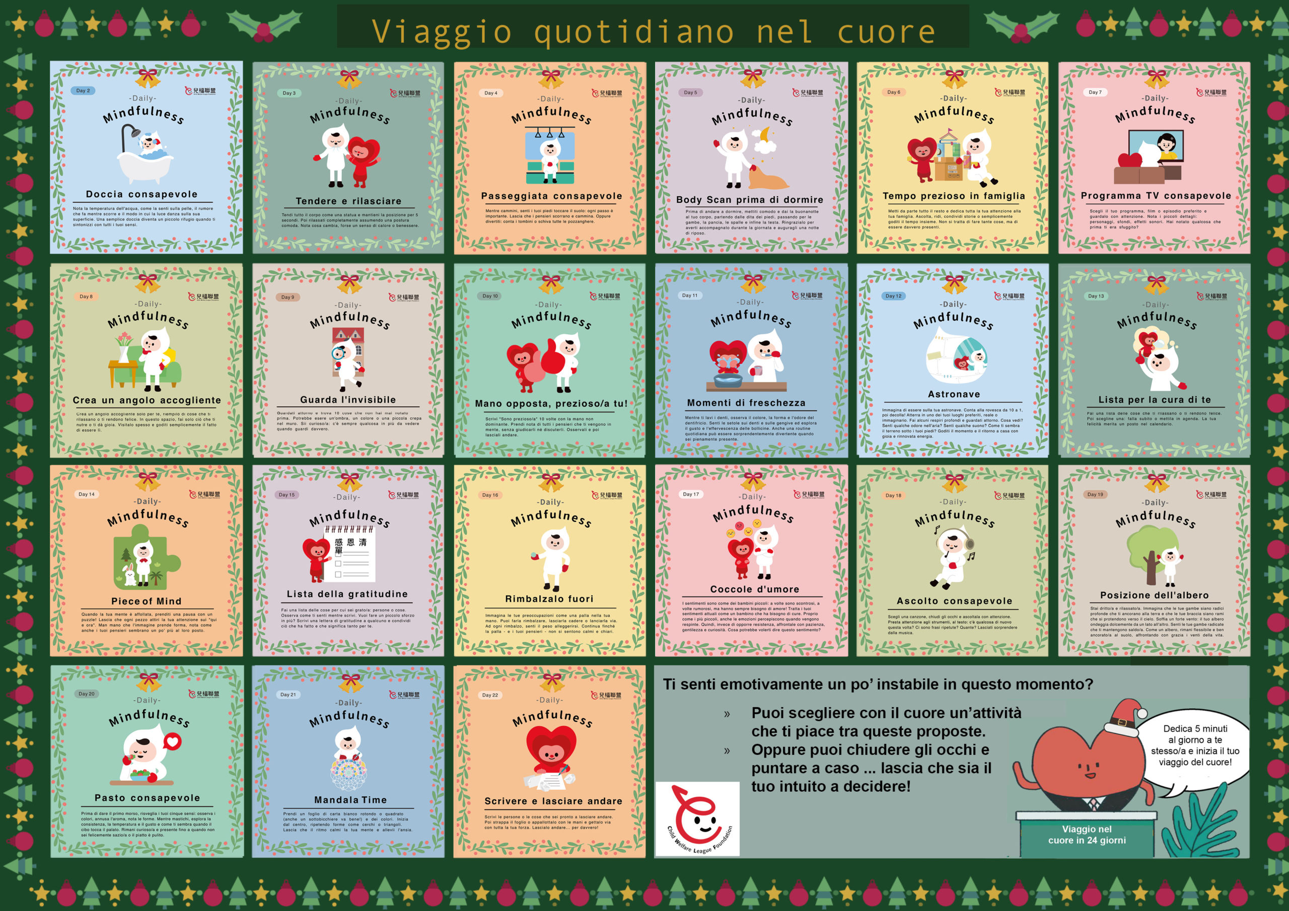 Da oggi e durante tutto il periodo dell’Avvento, ogni giorno sarete invitati a sperimentare una pratica di Mindfulness che può avere un grande impatto sul benessere sia degli adulti, sia dei bambini e dei giovani.